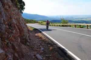 Nos desviamos en Bolea hacia Chimilla porque hemos quedado con Samuel de «Huesca con bici».