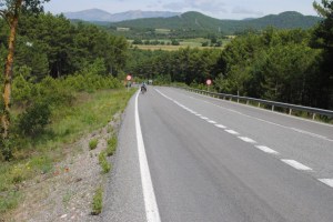 Por la tarde nos metimos pal cuerpecito otros 48 kilómetros por una carretera chula hasta Berga. Yo sin agua y un poco cansado… por delante estos dos que casi no beben ni agua.