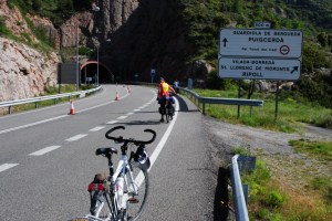 Salimos del camping de Berga un poco asqueados. Es de primera y parece ser que cuanto más importante son más difícil es hablar con gerencia y llegar a un acuerdo. Así que «que les den». Pagamos y seguimos. Me desperté tan dormido que se me olvido el cargador de las pilas en el bar del camping y tuve que volver casi un kilómetro. Bueno dormido y cansado.