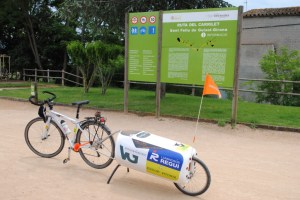 Son 39 km. desde Girona. Pero desde que salimos de Salt y con Xabier Corominas como guía cicloturista llegamos desde el mismo polideportivo de Salt hasta San Feliu a través de carril bici o vía verde. Una maravilla. Realizamos una parte del la Vía del Carrilet (la II).