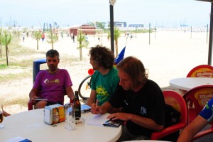 «El equipo del día». Hoy pedaleamos 8 personas. Se han unido Alber, Mamen, Juan Luis y Miguel Soroa. Así que en este nuevo pelotón están representados varios lugares: Cataluña, Cantabria, país Vasco y Navarra. Y por fin se ha animado a pasar un par de semanas una mujer con nosotros. Lo cual es una gran alegría y aprovechamos para animar a todas aquellas que deseen sumarse a la iniciativa que lo hagan.