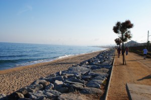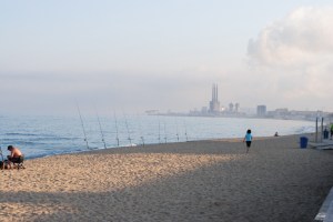 A lo lejos aparece Barcelna. Y en Premia de Mar hasta el centro de la ciudad se puede ir por el paseo marítimo. A ratos por los bicicarriles.