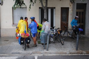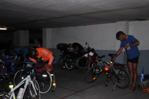 Llegamos a El Vendrell (Tarragona) y nos alojamos en el piso de Arturo T. El garaje sin coche es ocupado por las bicicletas.