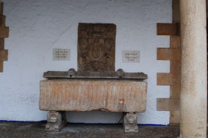 La fuente tiene dos chorros y dos inscripciones. En la de la derecha pone que no hay agua. En la de la izquierda pone que «solamente sale agua a veces y no es potable»