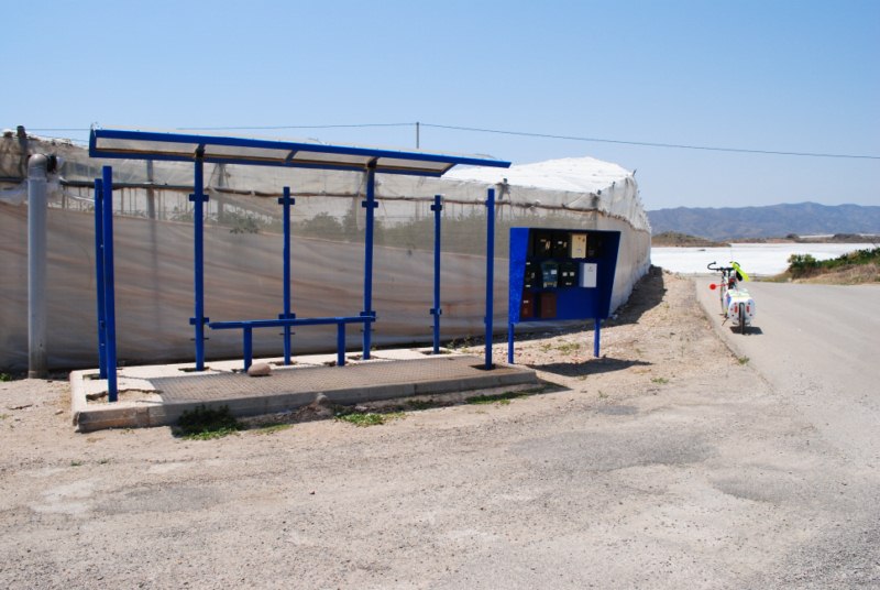 En el mar de plásticos hay calles y esas calles llevan a casas. Junto a la carretera aparecen buzones.
