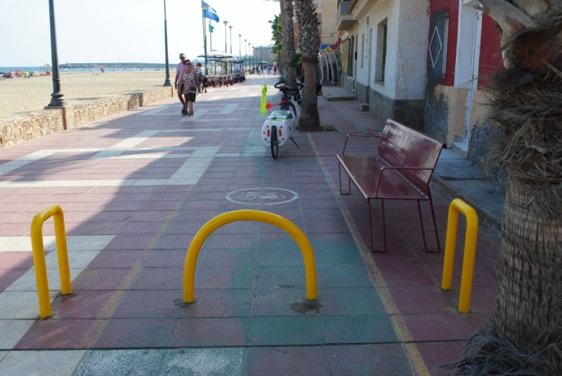 En el paseo maritimo de Aguilas hay un bicicarril. De esos bicichapuzas. Para muestra esta foto. Todo lo que no se debe de hacer en uno. ¿Veís el banco donde esta?