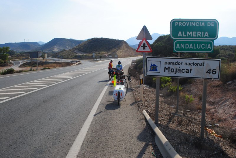 La etapa de hoy pasa por un puerto que no es que sea duro en rampas sino que es tendido. Pero el problema ha sido el calor. sobre todo porque se nos ha ocurrido la brillante idea de salir a por el puerto a las dos de la tarde (como si se fuera a ir de copas). Llegamos al otro lado a eso de las cuatro. Las gotas de sudor,.. Que sudor?? si para entonces ya no había ni gota que sudar. Joder casi 40 grados.