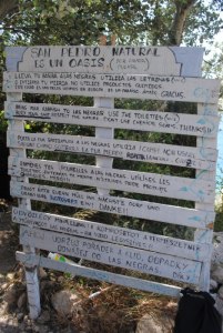 San Pedro tiene Castillo y el porque esta claro… era el único lugar con una fuente de agua dulce en kilómetros. Los corsarios intentaron hacerse con este punto en varias ocasiones pero no lo consiguieron. En 1998 Daniel Navarro compró la cala y a partir del 2001 la Consejería de Medio Ambiente acordó la adquisición. En la actualidad la cala esta de nuevo en manos de Navarro a quien la justicia le dio la razón. El problema al que se enfrenta Daniel es que la cala ha sido ocupada.