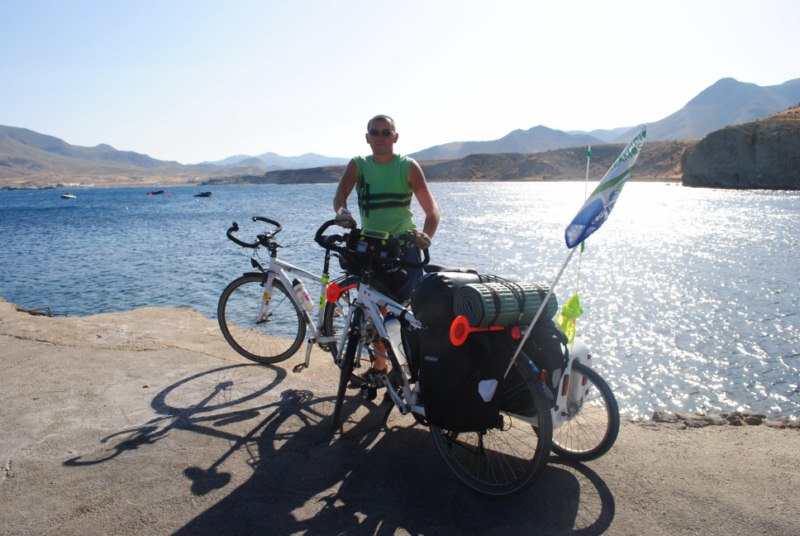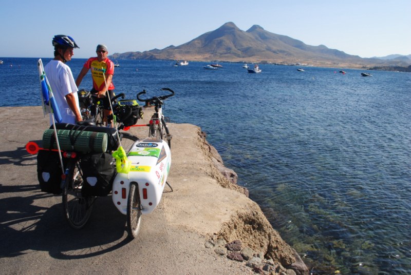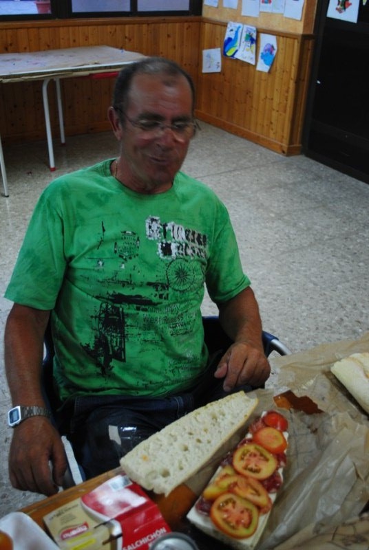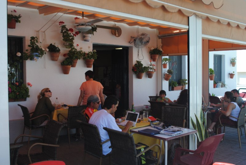 Artu T. tiene ganas de continuar camino y andamos durante una hora y cuarto. Llegamos a Las Negras y comemos en el restaurante «Casa Diego». Ayer hablamos con el encargado y nos dejo un garaje donde «alojar» las novias por una noche.