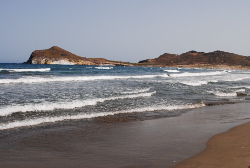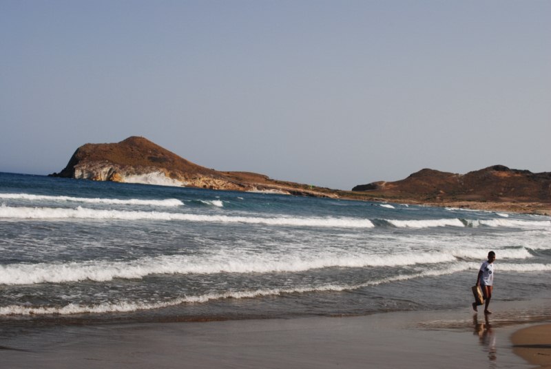 Después de un buen rato en el agua y otro rato al sol salimos de nuevo hacia San Jose. No hemos traído nada de comer (ya os dije que solemos hacer cosas extrañas) y debemos regresar. Al finalizar volvemos a realizar parte del trayecto anterior solo que esta vez cogemos el desvió a la Playa de los Genoveses. Esta última es algo más salvaje, o al menos esa es la sensación que me produce si bien es cierto que recibe de lleno al Levante y el oleaje es mayor que la de Monsul.