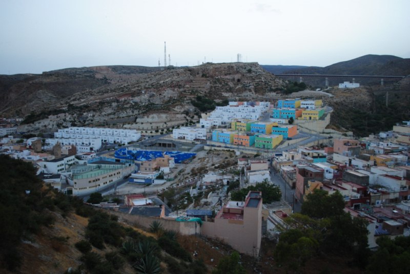 Almeria nos sorprende con una temperatura invernal, 38 grados a las ocho de la tarde. El grupo va creciendo y el ambiente es bueno. Como suele ocurrir en estos casos parece que nos conocemos de toda la vida. Nos sentimos integrados en la ciudad. Al rato comenzamos a rodar por la ciudad.