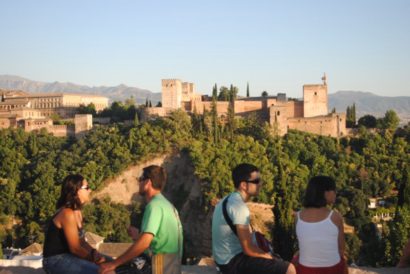 Lo que se inicia como una «jornada» de descanso acaba siendo un día «duro». Nos levantamos sobre las ocho para coger el urbano desde el Camping hasta Motril (unos 5 km). En la estación de bus cogimos el bus hacia Granada. Arturo T. decidió quedarse en la playa y yo acompañe a Chema que no conocía la ciudad. Entre otras cosas, además de ser una de «mis ciudades» queria reencontrarme con una pareja que conocí en China.