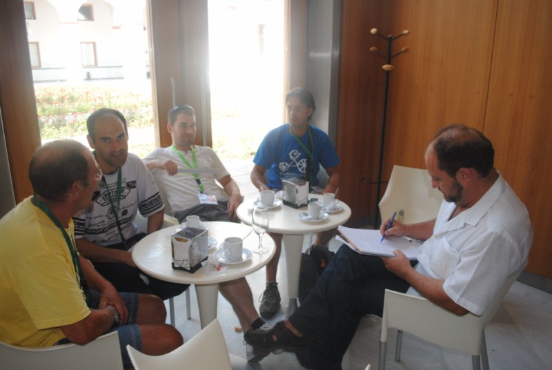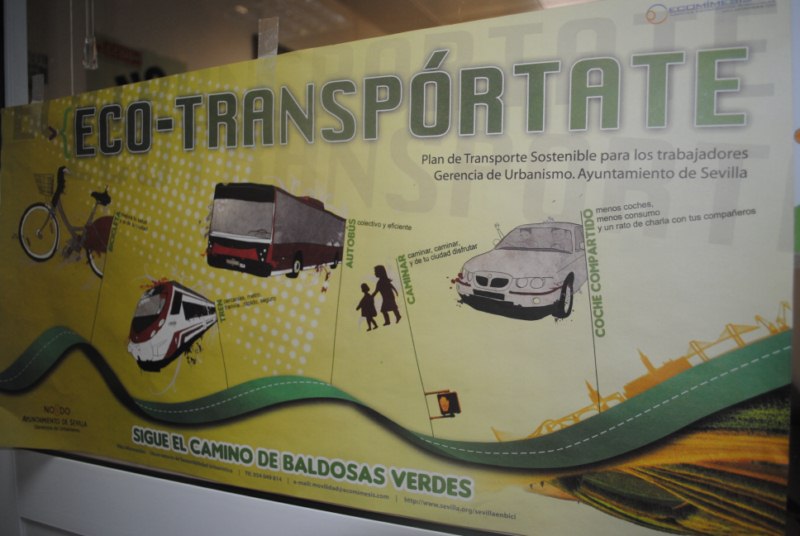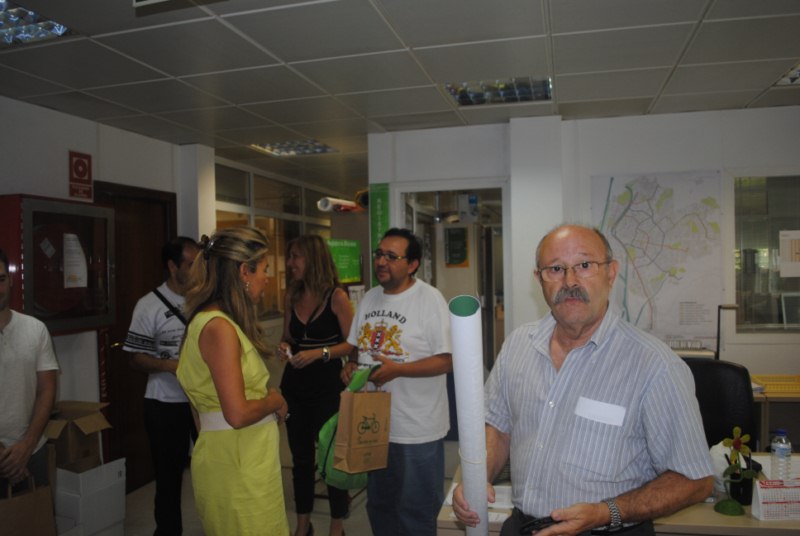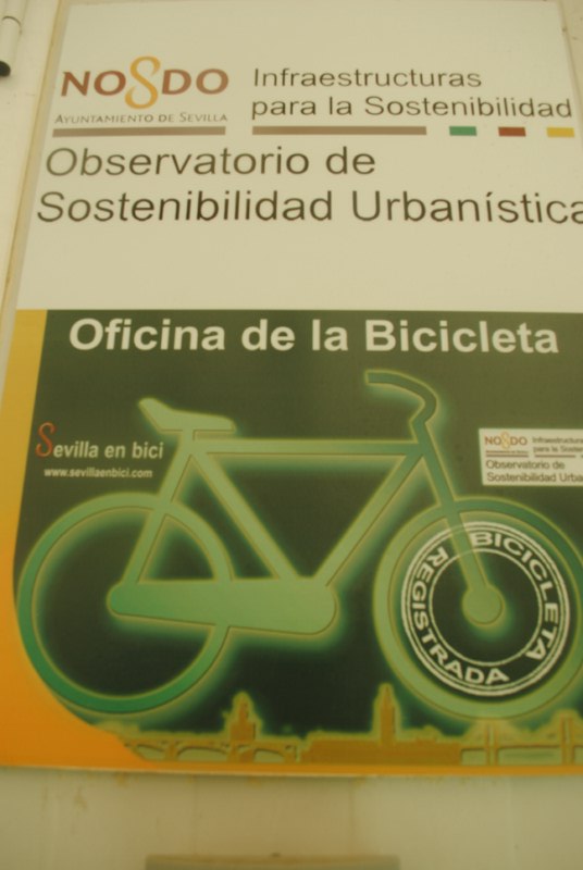 Hoy ha sido un dia de reuniones y encuentros. Por la mañana nos hemos dirigido a la isla de la Cartuja para hablar con Gabriel Baez, vicegerente del Departamento de Urbanismo de Sevilla. La conversación es amena y seria.. a veces, siempre a veces. Entre otras cosas deciros que las expectativas del ayuntamiento de Sevilla para el 2011 era llegar al 11% de los movimientos urbanos en bicicleta pero saben que esta un poco lejos. Ahora esta en torno al 6% (tened en cuenta por ejemplo que Vitoria-Gasteiz que presume de bici esta en el 3,8 %).