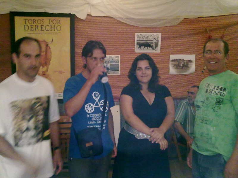 Por la noche, mientras bailamos y damos cuenta de unos «piscolabis», algo acorde para hacer la digestión del chino donde hemos cenado, aparece el alcalde de Huelva, Pedro Rodriguez y al rato le digo que desde que hemos entrado a la ciudad no hemos visto muchos gestos a favor de la bici en la ciudad. Me mira y me dice que este año se han construido 14 km. de bicicarriles y se hará más.
