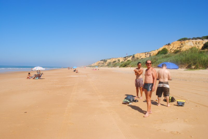 Salimos del camping y el paseo no dura ni media hora porque paramos de nuevo en la playa del parador de Mazagon… y otro chapuzon en un agua tan caliente como la del mediterraneo.