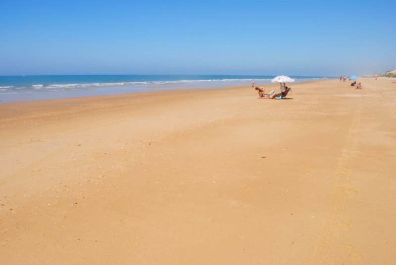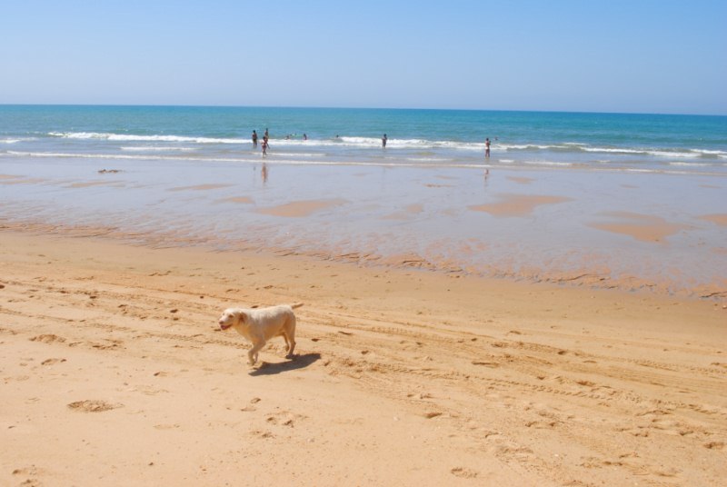 Al levantarnos nos piramos a darnos un chapuzon. La playa, inmensa, de Mazagon la tenemos justo al lado del camping así que aprovechamos.