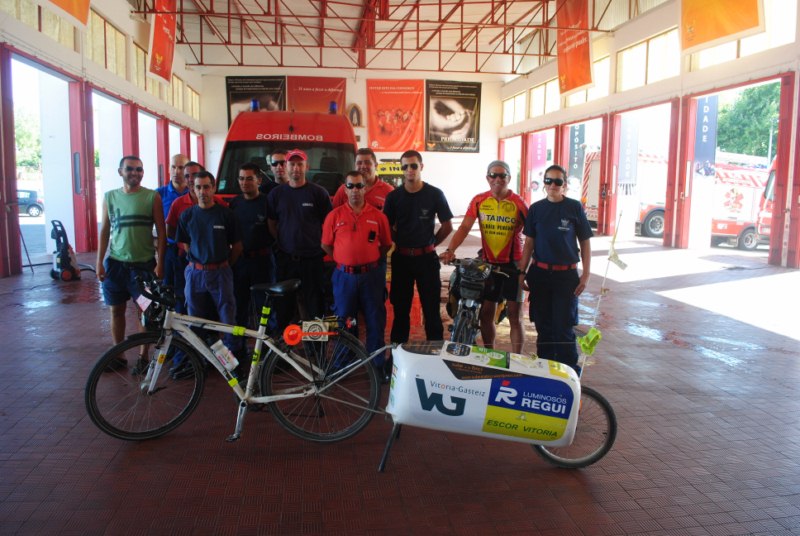 Hemos dormido en el parque de bomberos de la Albufeira. Los bombero son voluntarios y suelen acoger a la gente que anda en bici. Les contamos el proyecto y el comandante nos dio el permiso. Nos dejaron el salon de baile y dormimo bajo un techo.