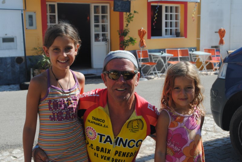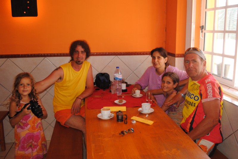 Lo que es la vida. Cuando pedaleabamos a las tres y media de la tarde (por eso de ver si el calor golpeaba de verdad) nos pita una furgo que iba en el otro sentido. A los pocos mínutos nos alcanza y resulta que es Jope, un colega de Cataluña.