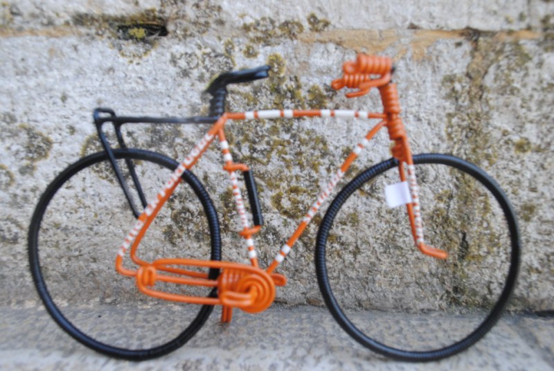 Jacinto es un artista que hace hasta diez tipos distintos de bicicleta. Hacer el modelo más sencillo le lleva casi dos horas y cinco la más complicada. Los precios rondan entre los cinco euros y medio y los catorce.