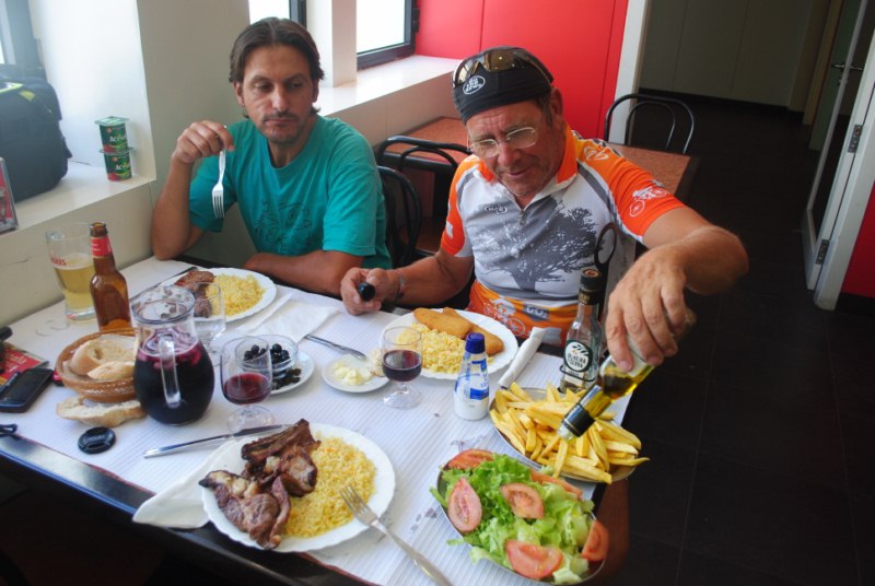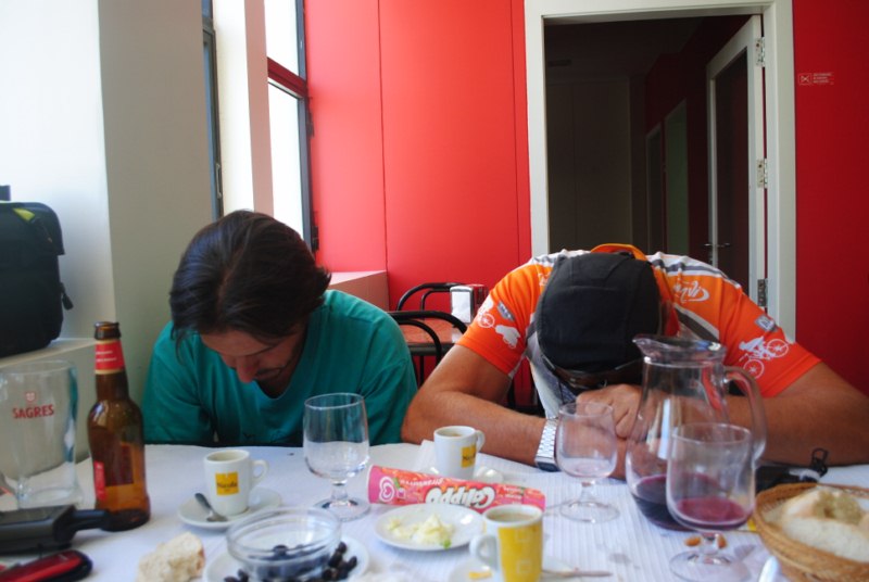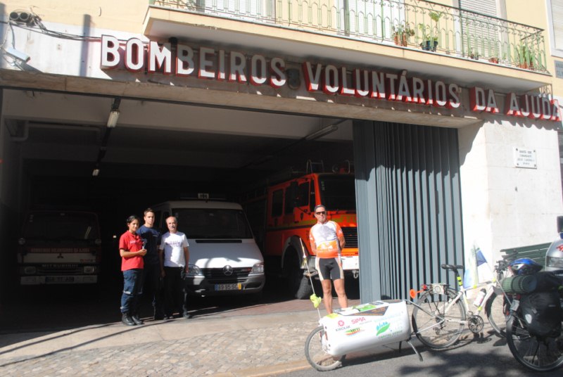 La noche anterior dormimos en los bomberos voluntarios de Lisboa. Solo pudimos hacer una noche y tuvimos que encontrar una pension cerca. Pero la amabilidad por parte de los bomberos fue buena y nos dejaron guardar las bicis. Esta mañana fuimos a recogerlas. Chema acompaño a Cris al autobus hacia Sevilla y al regresar desayunamos los tres.