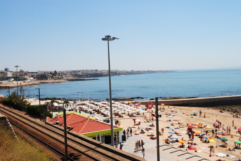 De Estoril a Cascais por la carretera. Hacemos un alto en el camino para pegarnos un chapuzon pero a pesar de la imagen el agua esta fría y según Chema no esta que digamos «muy limpia».