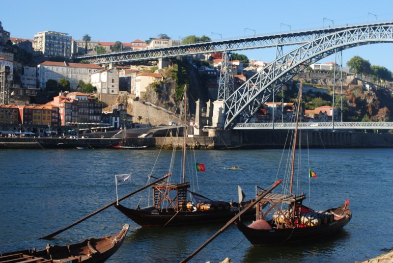 La entrada a Porto es complicada. Al principio transitabamos por una carretera marcada como nacional pero parecia comarcal y ni tan mal pero a diez kilómetros de la ciudad todas las carreterillas parecian desembocar en autovías. De hecho tuvimos que coger alguna y aquello era un cristo del diez. Cansados del ruido y sobretodo del peligro paramos en una gasolinera y preguntamos una mejor alternativa de entrada y nos la dieron. Que si por aquí que si por allí acabamos en el Duero y con las vistas maravillosas del casco histórico de la ciudad.