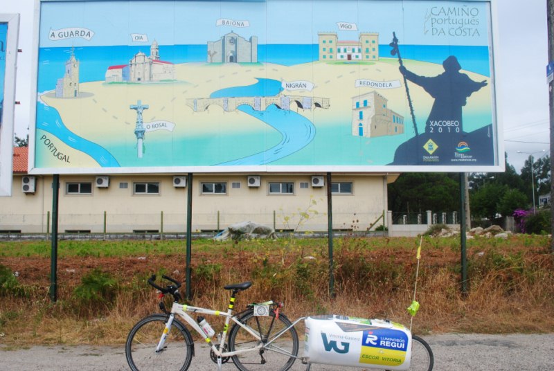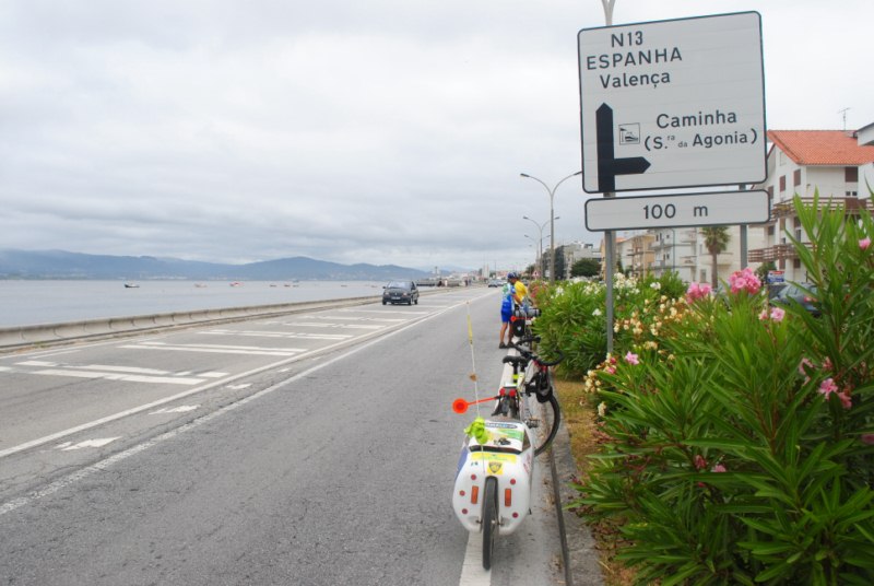 Salimos de Viana Do Castelo con los escudos y unas botellas de agua que nos han dado los bomberos municipales de Viana. Antes nos detenemos a desayunar. El tiempo nos acompaña en el pedaleo. Ni frio ni calor. Desde Lisboa las temperaturas han descendido y al sol lo vemos más bien de refilon. Galicia nos recibe con la nube encima.