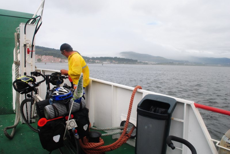 El rio Miño es la frontera entre Portugal y España. En Caminha cogemos el ferry boat que nos cruza a «A Guarda». El billete sale por 0,75 euros. que es el precio de la bici (el conductor de bicis y coches no pagan).