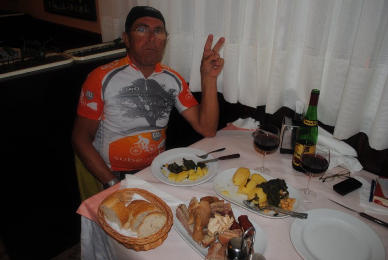 Arturo T. y yo a cuadros. Parecía leernos el pensamiento solo que era por cosas diferentes. Nosotros entendimos que a Chema no le dieron bien las opciones para seguir la ruta (se había adelantado a nosotros que nos quedamos comiendo) y había retrocedido hasta Corcubion, donde nos encontramos justo al terminada de comer. Chema decidio seguir por otra ruta de interior olvidando una carreterilla junto a la Costa da Morte.