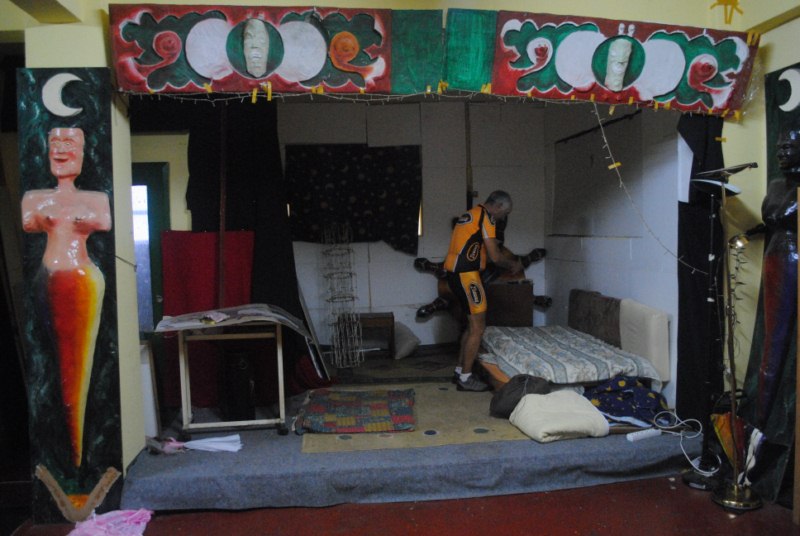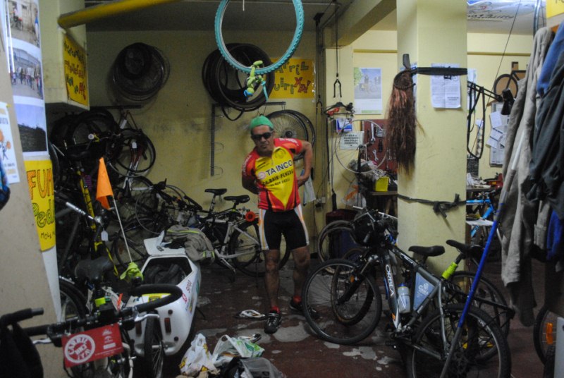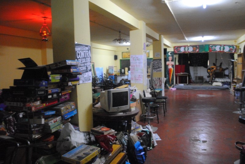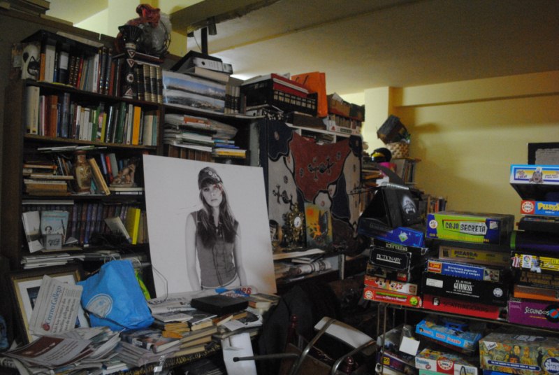 Este es el lugar donde hemos dormido estas dos noches. Hemos dormido en sitios curiosos pero este ha sido de los que quedaran en un lugar «a recordar». Dormir aquí tenía algo de surrealista. Aquí tambien dormía el ex-curra «rojillo» Nicanor. No sabemos exactamente si esta lonja de tres pisos le pertenece a él o si todo lo que hay lo ha ido acumulando él. Tenemos que agradecerle el darnos cobijo. Hemos dormido entre miles de libros amontonados en estanterias, en el suelo etc etc. Entre ropa de no se sabe muy bien la procedencia y entre ordenadores que nos dicen mucho. Era todo para pensar si ponernos a ordenarlo en un arrebato de querer limpiar y no parar. Pero por otro lado el sitio estaba así, no teniamos muchas ganas de hacer nada y por otro lado no somos nadie para ponernos a desordenar más de la cuenta.
