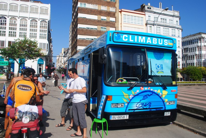 En pleno Ferrol nos encontramos con el Bus Climatico. Urs y Carles son los educadores ambientales que durante un mes recorren distintad ciudades españolas concienciando de los problemas que provocamos en el medio que nos rodea y pequeñas acciones que podemos realizar cada uno de nosotros.