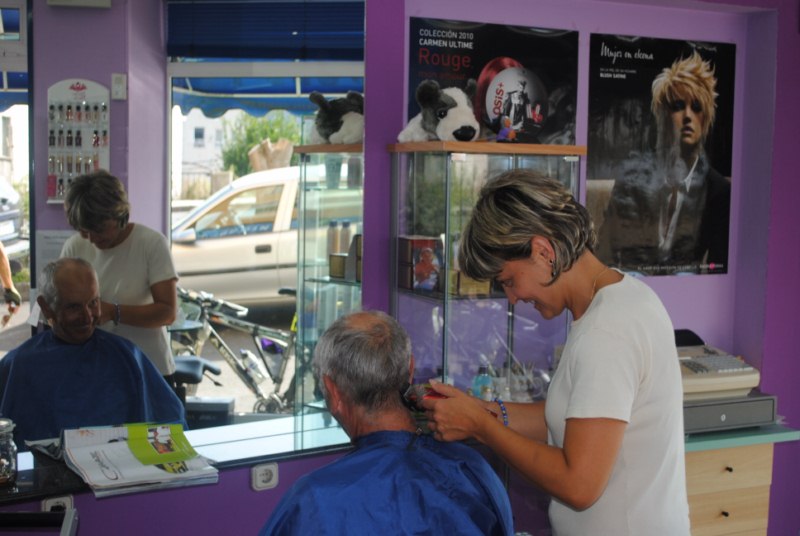 Hoy ha sido una etapa corta pero la hemos aprovechado entre otrs cosas para pasar por la pelu y raparnos el pelo Miguel y yo. La peluquería es de Maria del Pilar y gracias a ella y a una clienta que nos dejo pasar pudimos cortarnos el pelo y seguir ruta.