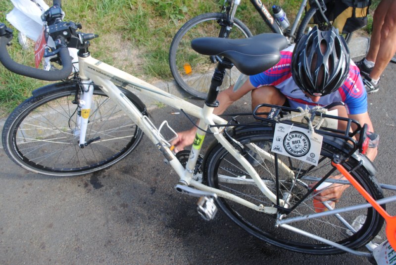 Después atendiendo los consejos de «La Roca» paramos en una gasolinera para limpiar la bici.