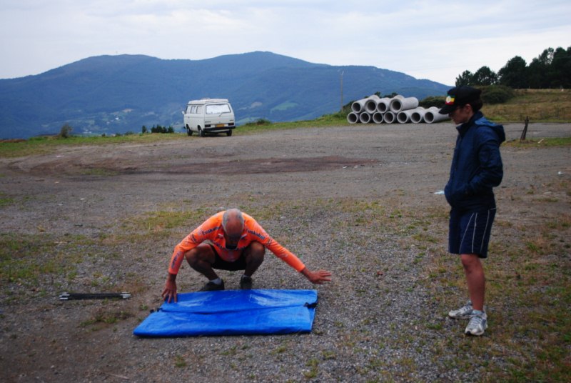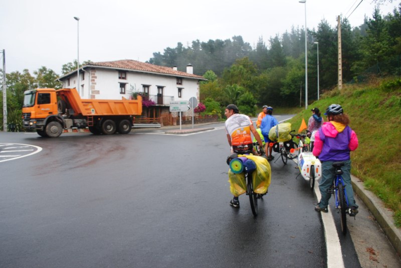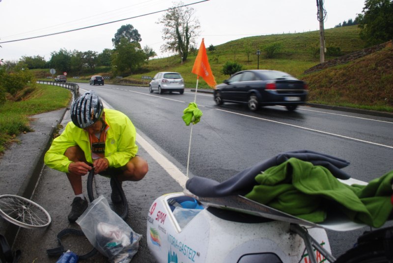 Después de pasar Gernika, camino de Lekeitio, pincho la rueda del carro. Por suerte detrás de mi viene Sandra y Miguel. Asunto solucionado en menos de la mitad de tiempo que me costaria a mi.