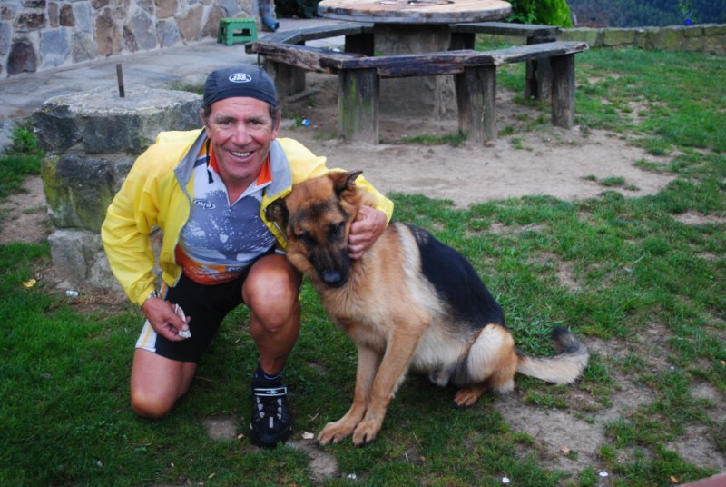 Acampamos justo detrás del bar «bar01.com». A media noche comenzo a llover y ya no paró hasta las ocho de la mañana. Las tiendas húmedas a los sacos.