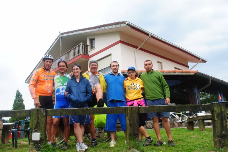Hemos pasado la noche a 3 km. de Bakio carretera de Bermeo. Resulta que saliendo de un super con la cena preguntamos a un chico por un lugar donde podiamos colocar las tiendas de campaña y nos acabo diciendo que el tiene un restarante a 3 km donde los surferos suelen acampar… asi que para allí derechos. El lugar estaba donde duermen las arñaas. Es decir arriba, a lo lejos.