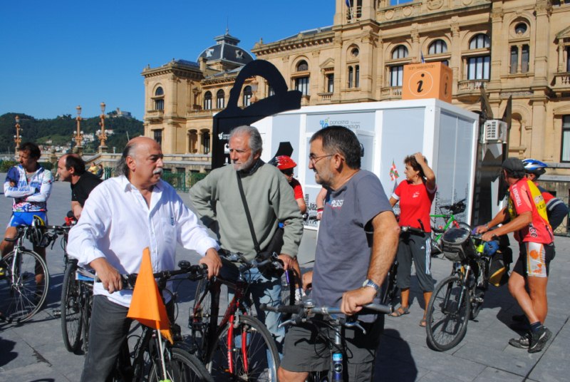 Levantarnos, desayunar, colcocar el equipaje y a la estación de tren. Esta vez nos acompañaba Mamen y Juan Luis «El Volcan de Ripodas». Regresamos hasta Donosti después de llegar ayer por la tarde a Cabo Higer e Irun. Cogimos el topo (tren de cercanías) por dos razones: evitar recorrer la misma zona por donde pasamos ayer y en segundo lugar por ver si teniamos problemas la semana de la movilidad al subir al tren.