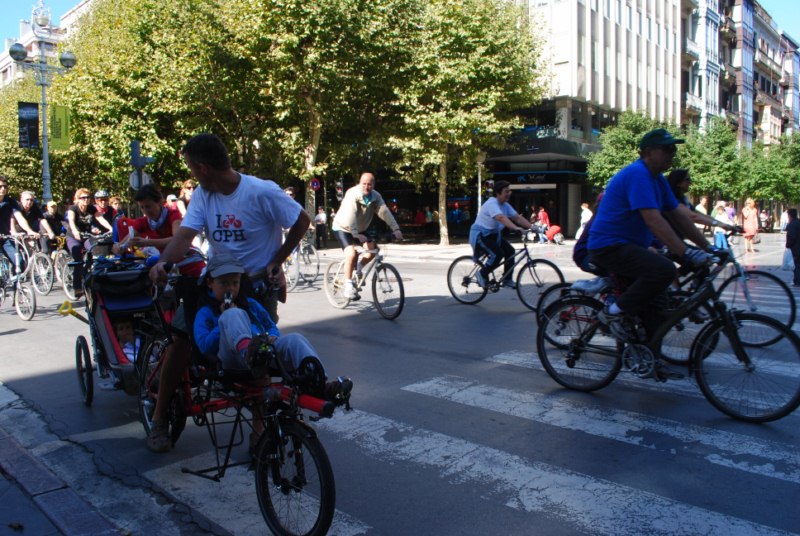 San Sebastian se engloba en las ciudades que más han hecho por promover el uso de la bici. Me llama la atención la cantidad de padres que salen con sus hijos pequeños a pedalear.