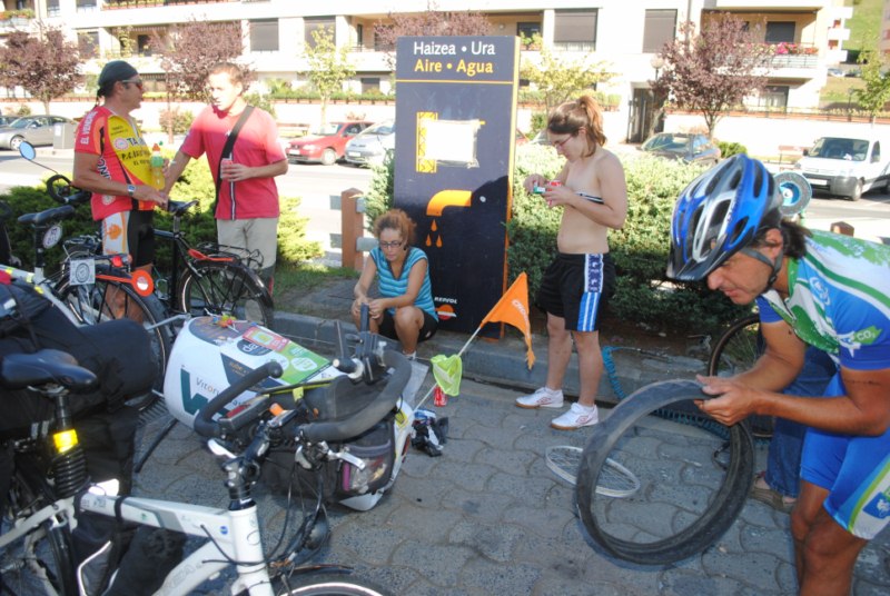 Los caminos se vuelven a cruzar. A la marcha se acerca el cicloturista que nos encontramos en Gijon haciendo el camino del Norte. Después de dos semanas nos volvemos a ver las caras.