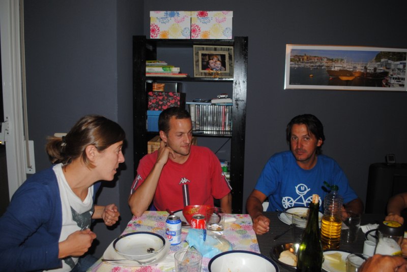 Acabamos el día en casa de Ioanes y Maria que se han currado una cena. Compartimos tertulia entorno al monotema «la aventura y la bici como eje central». Los dos compartimos sueños que se cumplieron (Ioanes desde Alaska a Usuhaia y yo hacia China). Los dos seguimos «viajando».