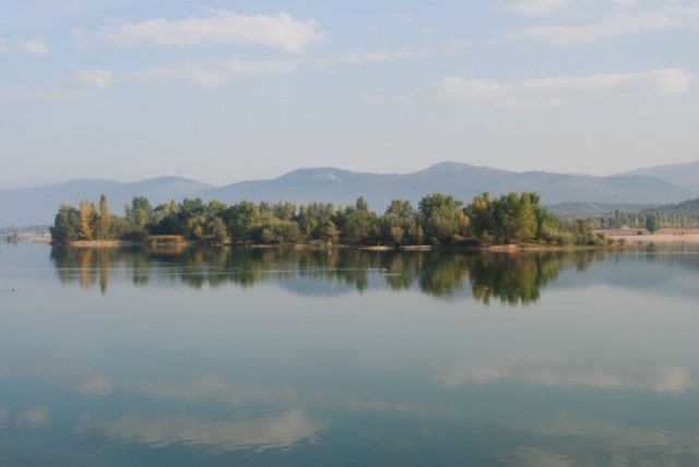 Nos despedimos por la noche de Zubi ( es lo que tiene el madrugar mucho) y de Eva por la mañana. Sin quererlo nos hemos «adueñado» de la casa por unas horas. La hospitalidad como tantas veces en esta aventura se nos presenta el último día también. Ellos viven en Larrea, un pueblo a unos 20 km. de Vitoria. Pero no cogemos la linea más recta o mejor dicho la vía más rápida de llegar a la ciudad. Atravesamos el pantano.
