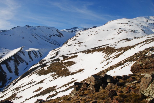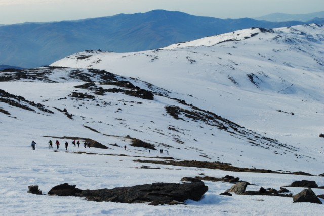 La ascensión de la loma que conduce al Mulhacen por el sur es fuerte pero no requiere de capacidades tecnicas importantes.