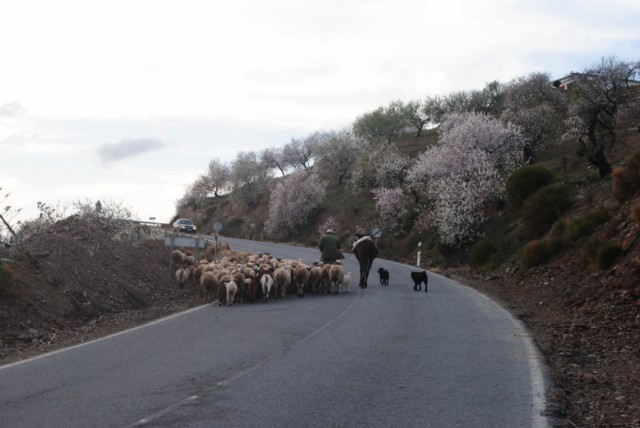 Nos levantamos con una buena helada pero en cuanto el tiempo levanta cogemos a Caprichosa y su compañera y nos damos una vuelta por las Alpujarras. Estamos en una de las bodegas más altas de España y aunque partimos de altura al descender hacia el valle del rio Guadalfeo tenemos que recuperarla. Y es que en Contraviesa y Sierra Nevada son todo desniveles. Durante el día hemos atravesado un paisaje con multitud de pequeños cortijos entre cepas y almendros.