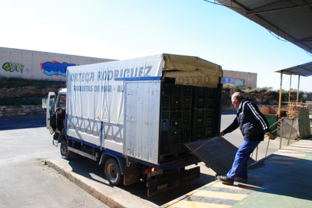 Con Ramon me acerco a los almacenes donde “se mueve el percal”. Se pesa el camión con la carga y se lleva a descargar al muelle.