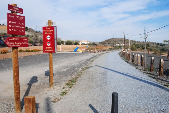 La vía Verde de Serón también recibe el nombre de la Vía de hierro. Son 11,8 km desde el cargadero de Serón hasta la rambla del Ramil (sierra de los Filabres y Sierra de Lúcar (Valle del río Almanzora). El piso de gravilla suelta deja mucho que desear.