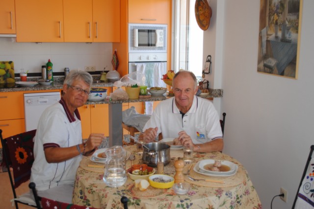 Llegue a Carboneras y vino a recibirme Lilo, una amiga de Suiza que pasa temporadas en España. Ella y su marido eligieron Carboneras por varias razones. Una de ellas me la explica y es que es una localidad que conserva muchas cosas que recuerdan a un pequeño pueblo. Me doy cuenta que están totalmente integrados en Carboneras. Conocen a la gente y viven en el centro no en una urbanización de guiris en las afueras. Pasan el tiempo entre los locales y eso les acerca a las costumbres locales. Y otra cosa importante participan en las actividades sociales no para extranjeros sino para todas las personas que lo deseen.