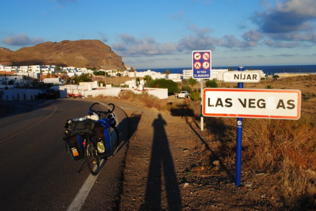 Y ahora mientras llega el olor de la comida “suiza” a la habitación miro las alforjas. En una hora o poco más comenzaré a pedalear rumbo Las Negras, en el corazón del Cabo de Gata. Son pocos kilómetros, unos 33, y tiene algún que otro repecho. Rumbo hacia el sur, con la mar a mi izquierda. Con caprichosa de compañera.