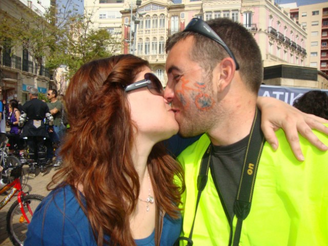 Nos llegan fotos de la bicifestación de Almeria. Juanjo, Adela son algunos de los bicicleteros que llevan la bici en la cara.