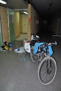 Recogemos los bartulos y nos acercamos hasta la cafeteria más proxima al pabellon municipal Vista Alegre. Hemos hecho noche aquí gracias a la colaboración de ayuntamiento de Cordoba y con el apoyo del Coordinador de Centros Deportivos de la Ciudad, Antonio Muñoz.