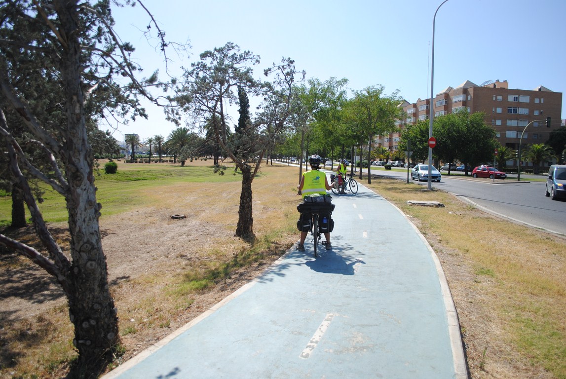 Cuando llegamos a un centro comercial, vino a recogernos José Antonio Cebrián, el cual nos aloja en su casa y nos hizo una visita guiada en bici por el camino que nos encantó. La verdad que para mi ha sido un lujo conocer a gente como él, Ricardo o Juanma de Acontramano, con los que pasamos un rato muy agradable y de los que nos llevamos la esperanza y las ganas de conseguir que el cambio que ha dado Sevilla con respecto al uso de la bici urbana lo pueda dar Almería. Gracias por ser tan valientes y demostrar que los cambios son posibles.